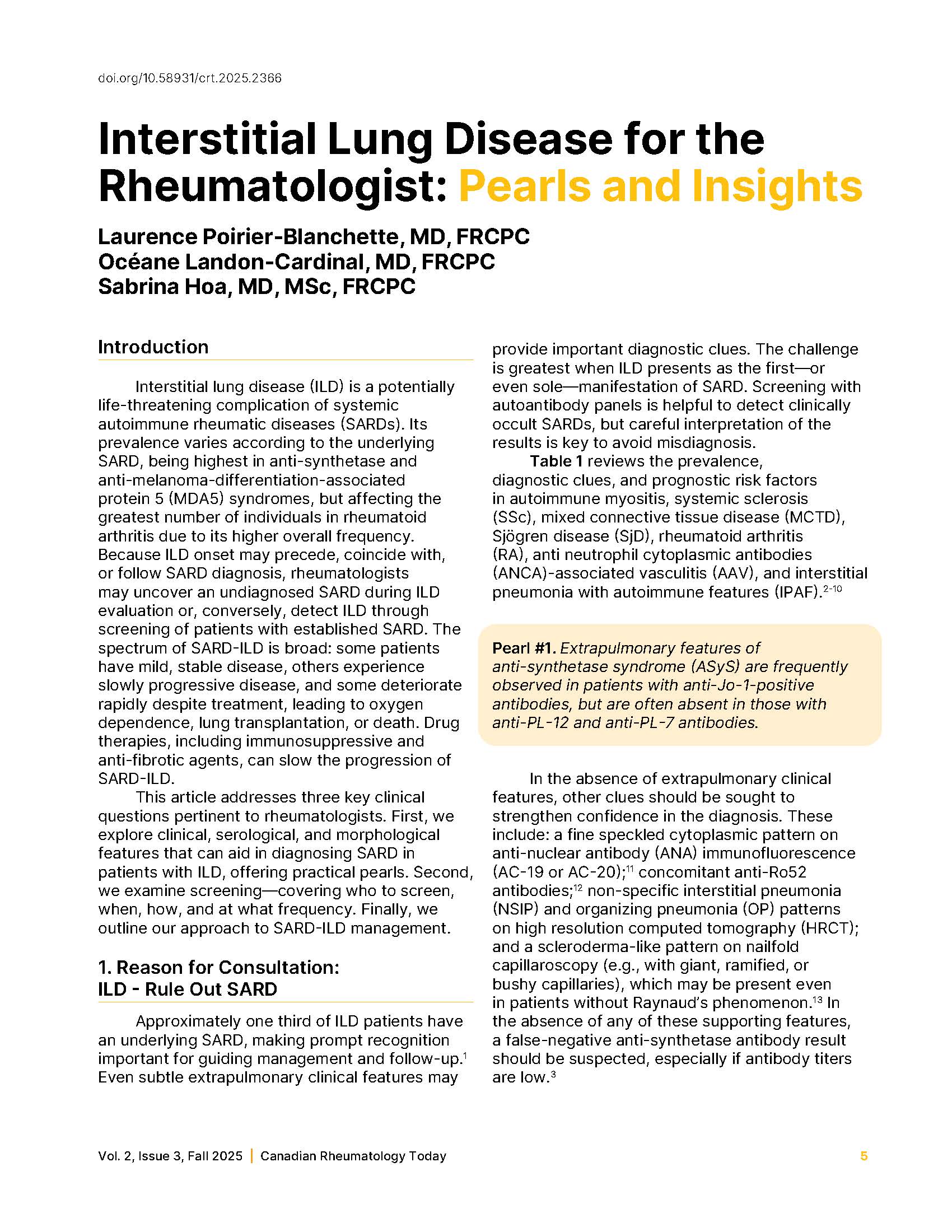 - Interstitial Lung Disease for the Rheumatologist: Pearls and Insights