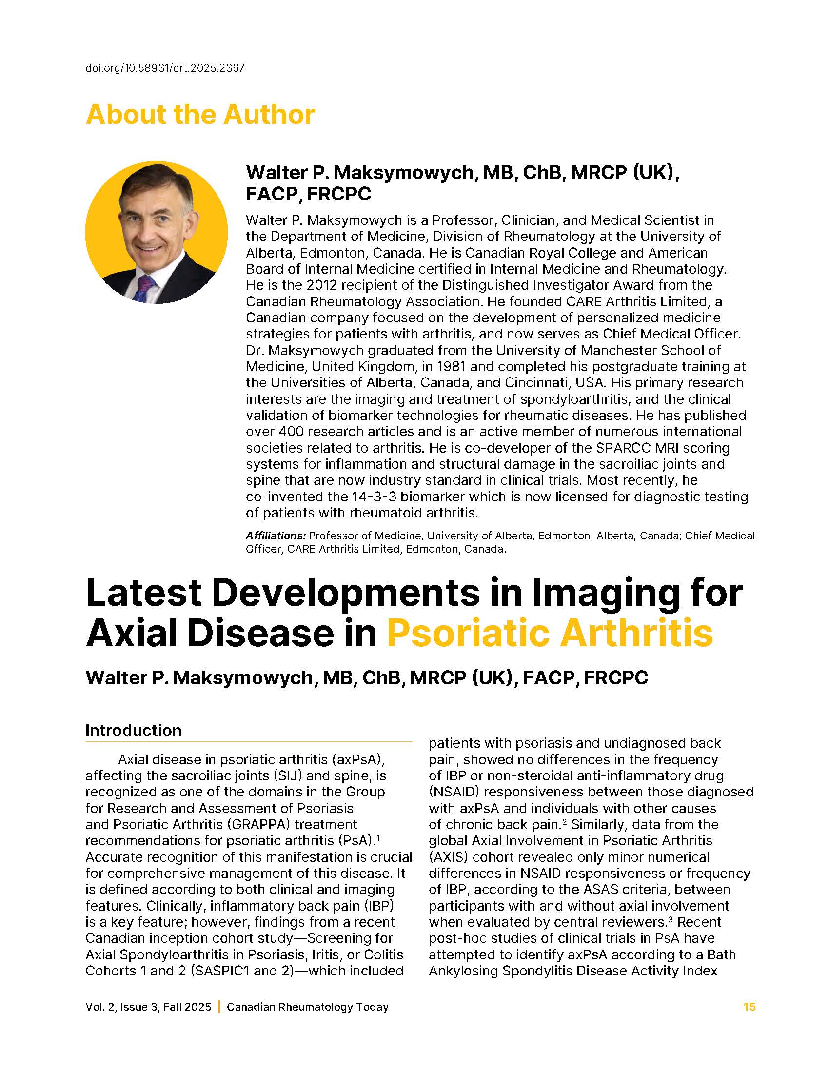 - Latest Developments in Imaging for Axial Disease in Psoriatic Arthritis